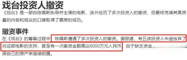 可以说,《戏台》从一开始就伴随着争议、质疑、甚至被投资人和观众嫌弃。下面来看看电影一路上遇到哪些困难。