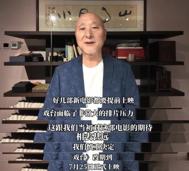 万般无奈之下,陈佩斯只能宣布《戏台》改档期到7月25日再上映,为另外两部电影让路,也为自己争取喘息之机。陈佩斯也是为此发视频道歉。