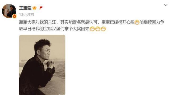 不过王宝强还是发文安慰了粉丝,说这次有个提名已经非常好了。
