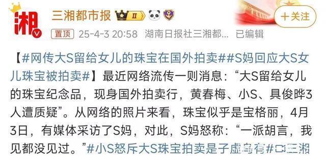 珠宝疑云年初就开始发酵。今年2月大S去世后,3月便冒出“大S生前珠宝国外被拍卖”的传言。