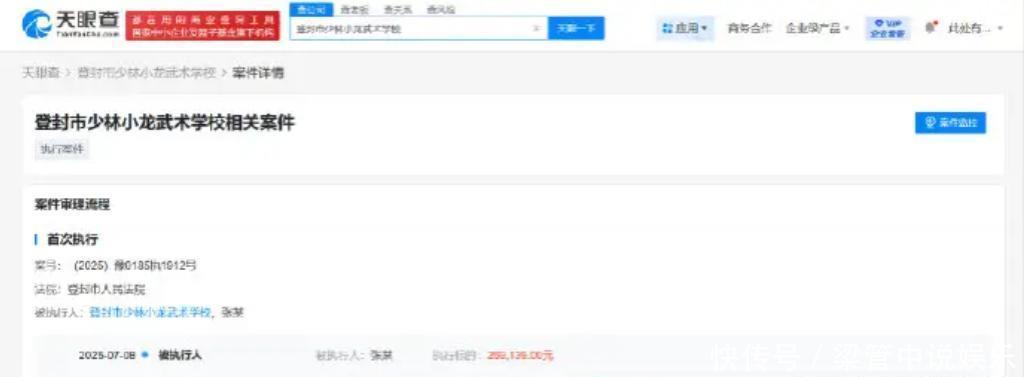 释小龙父亲任职的少林武校被执行26.9万.金羊网