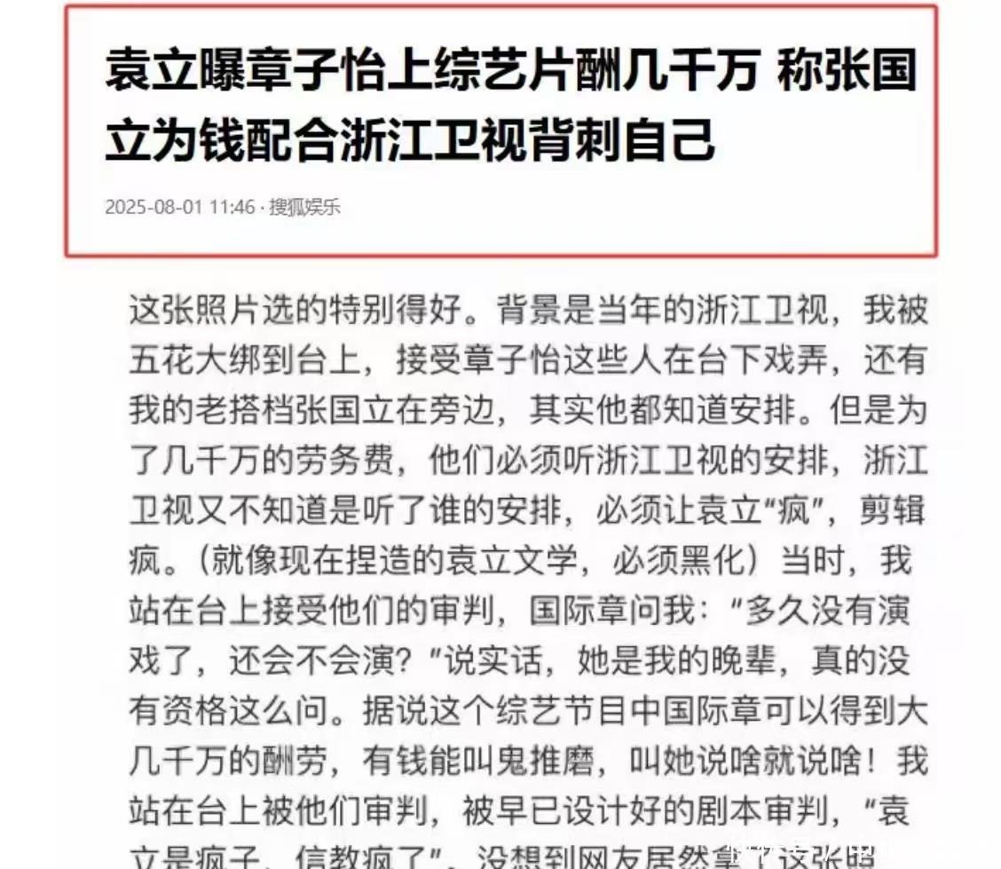 更让人震惊的是,袁立还曾爆料,张国立和章子怡之所以会这么听话,这么配合。