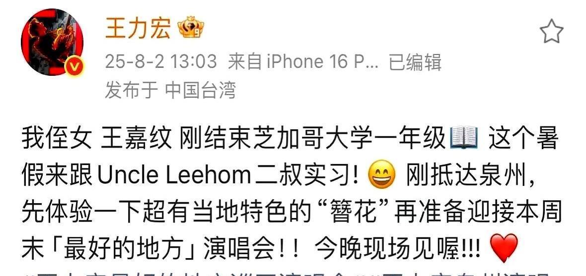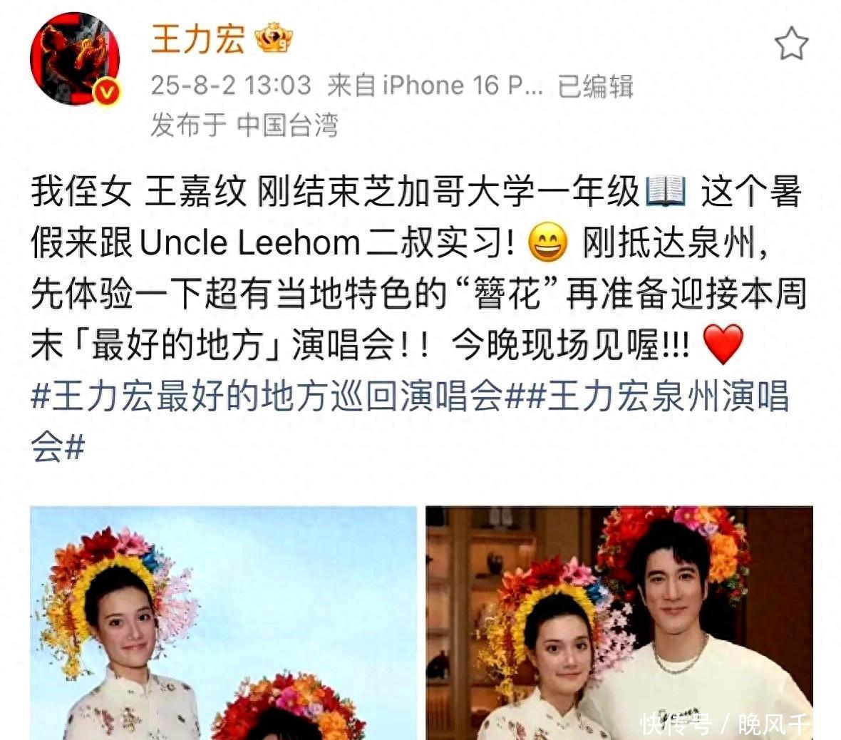 王力宏带侄女泉州实习!49岁还有少年感,侄女漂亮,脸型嘴巴像他