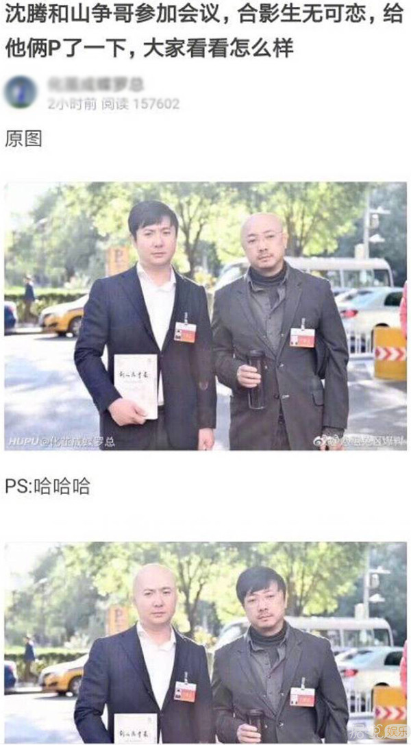 除了沈腾和杨洋的同框照,那天还有一张沈叔叔和徐峥的合照引发了爆笑。因为网友发现把他们发型互换一下竟然毫无违和感!