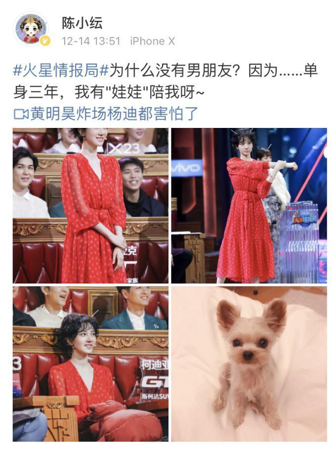 聊到颜值在爱情中带来的困扰时,陈小纭也坦言因为颜值导致无人追求,不过并不介意,直呼养一只狗挺好的,被众人一针见血鉴定“三年没有男朋友”。
