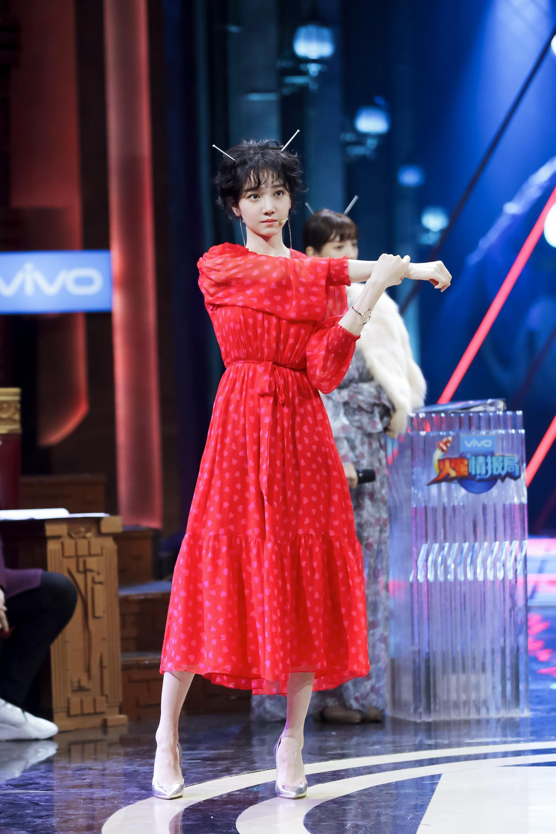 节目一开场,在Justin的歌声中,她身着一袭红色长裙,走到舞台惊艳亮相,短发优雅又带着几分俏皮可爱,展现出甜美可人的精灵气质。