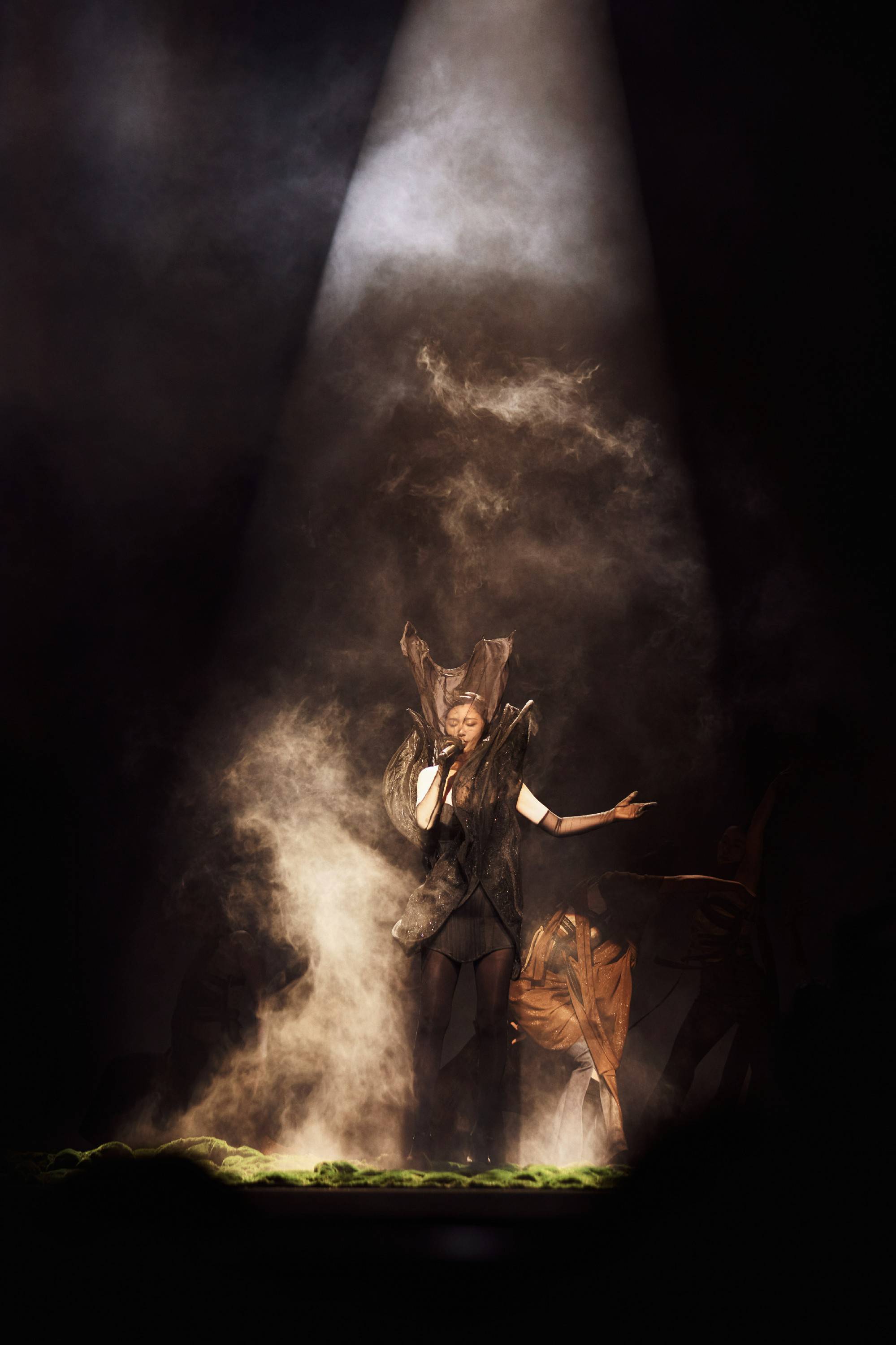 《声声世世》以“风”为引,串联“混沌”“山海”“人捺”“大荒”四大篇章,以十七首歌曲,共同构筑出一个从宇宙初开、神话延展,到人间百态、情感归真的完整叙事场域。音乐会不仅是谭维维个人艺术理念的集中呈现,更是一次对“音乐从哪里来”这一根本命题的深入回应。她以“采风者”的身份出发,游走八方山海,汇集“八材”之器,颂赞四海之歌,将散落于山川湖海的民间声音——从华阴老腔、川江号子,到彝族口弦、湖南花鼓调、蒙古马头琴等等——重新拾起、编织、活化,使其在当代舞台上焕发出新的生命力。音乐究竟从何而来?谭维维藉由十七首歌,让观众切身体会到音乐的确是扎根于沃土,从大地奔涌而出的文明之回响。