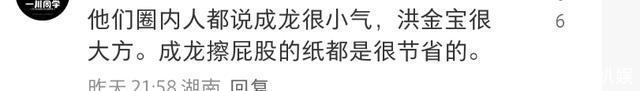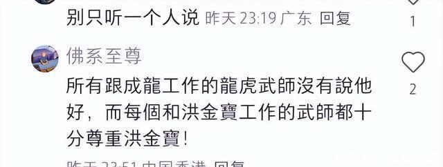 还有人在评论区提到当年成龙的大哥洪金宝,却是清一色的夸,表示相比起成龙,洪金宝才是真讲义气。