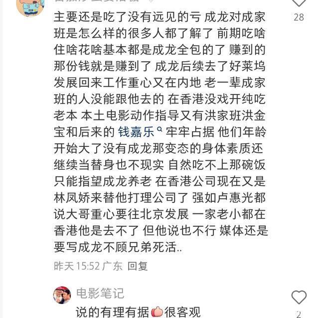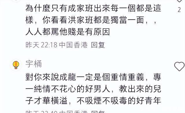 评论区也有网友指出说法中的漏洞,更像是他这些年混得不好,强求成龙念旧情帮他养老,成龙做不到这一点,他就恼羞成怒出来爆料。