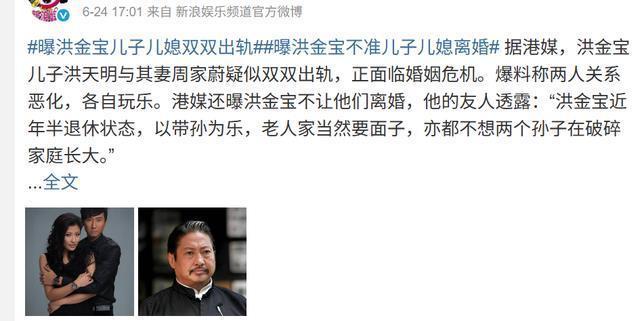 他这几年唯一的槽点还是在儿子的婚姻上,儿子洪天明的婚姻老是被传婚变,不过在他的强烈要求下,这段婚姻也是有惊无险的维持下去了。
