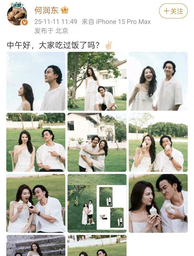 11月11日,何润东在社交平台上晒出了夫妻俩的最新情侣写真,并配文写道:“中午好,大家吃过饭了吗?”