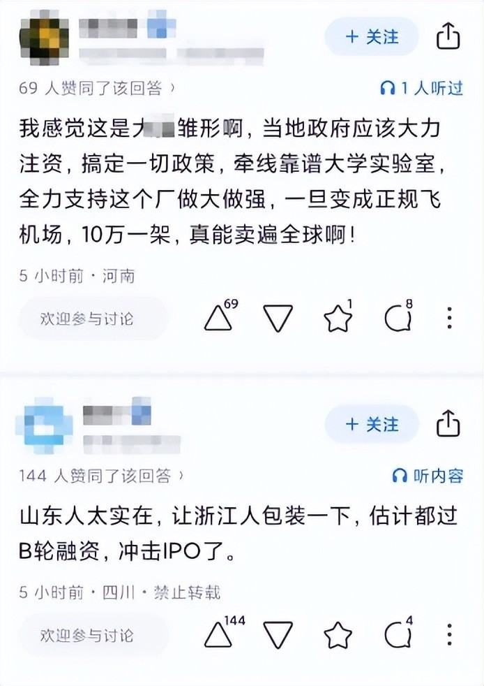 而且这类产品在短视频平台上已经形成了一定的“民间传播力”不少博主发布试飞视频配文“私人飞机定制十万以内搞定”。而评论区里竟然真有人留言“能不能发货到云南”“有没有分期”。