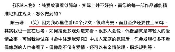 像陈玉珊自己说的,她心里大概住了50个少女,故事再写50年少女心也不会被用完——她太懂最能戳中人心的点在哪里了: