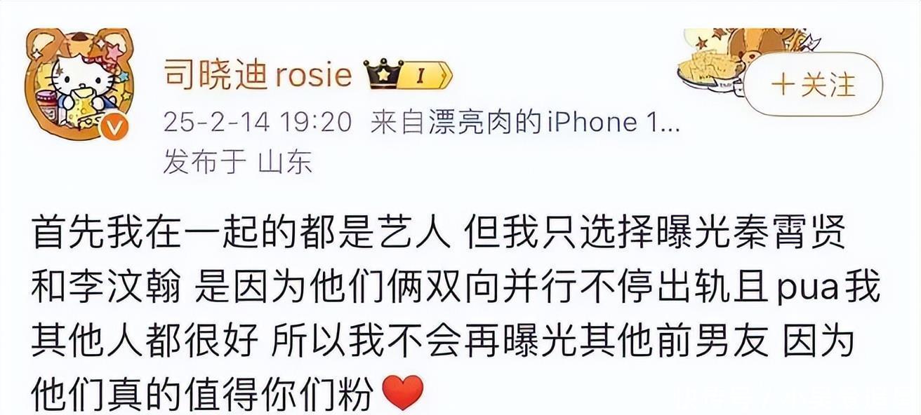 司晓迪这人也不是第一次搞这种操作。之前她就曾爆料李汶翰、李云迪,但每次证据都支离破碎,最后不了了之。这回她倒是懂得流量密码了,先放料、再删帖、又否认,每一步都踩在热搜节点上,账号一天涨粉几十万。