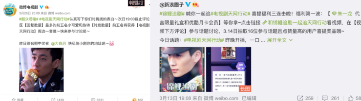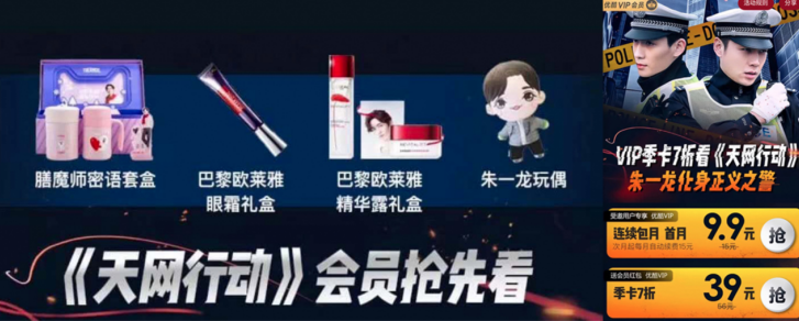 联合新浪新闻锦鲤追剧主题活动也是打透粉丝圈层,服务升级的一大“卖点”,优酷线上派送的系列礼物及精美周边无疑迎合了受众心理,定时领取三天免费会员权益,天网行动VIP优惠活动跨越平台、影视、受众三方联结关系,满足粉丝深层情感,极大程度地提高了观众讨论的参与热情。