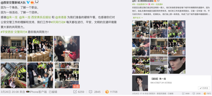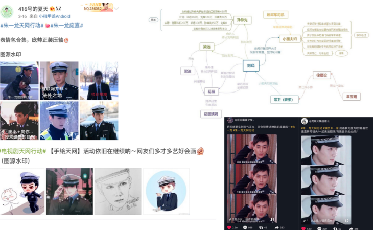 在这样的情景下营销团队早已料事如神,在掌握各项市场数据多方影视动态的情况下,该出手时就出手,这部剧从上线倒计时起,就以各种包装了粉丝滤镜的官方物料非官方图片在饭圈先爆了,一时间#24岁朱一龙嫩、#朱一龙制服照 等话题变成了这部剧吸睛的原点。以钩子人设、场景、信息点投喂作为物料,引得一票娱乐大号、网友纷纷关注朱一龙又有新剧要上线?策略创意物料生产实力宠粉,在播前、开播日、节庆日,核心节点与众网友“约定”互联网上,应邀粉丝积极宠粉,拉动声量峰值提高。