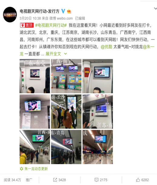 最近举办的地铁活动如火如荼,官微发起的“我在这里看天网”系列活动也得到了众多网友支持与参与,网友们纷纷赶到地铁打卡拍照。铺满15城的地铁宣传片覆盖率杠杠滴多,“疏而不漏”的地域天网格局,“你在哪里看天网啊?”
