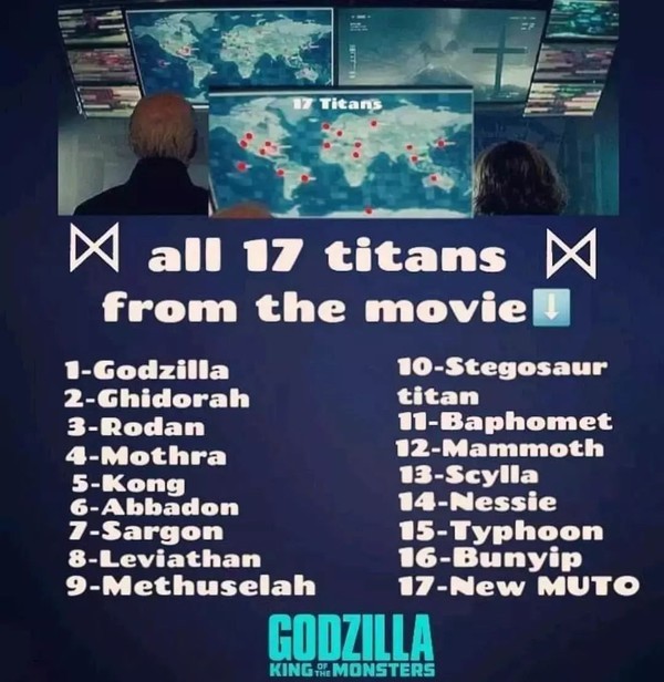 与此同时,官方决定将在《哥斯拉2:怪兽之王》中全部放出17头怪兽,并曝光了它们的名号。