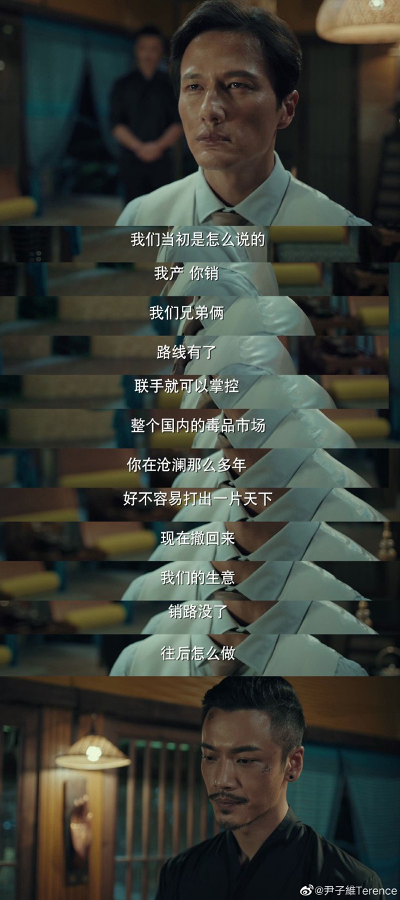 日前的剧情中,由尹子维饰演的毒枭大佬马斯戒揭开神秘面纱,作为目前最大反派boss正式出场,称霸一方的毒贩顾涛只能听命于“马哥”,引网友笑称:“顾涛在马斯戒面前乖得像小弟!”“反派专业户”尹子维的演技可圈可点,将马斯戒的神秘、道貌岸然演绎得入木三分,每个眼神和举止都透露出沉重的紧张气息。