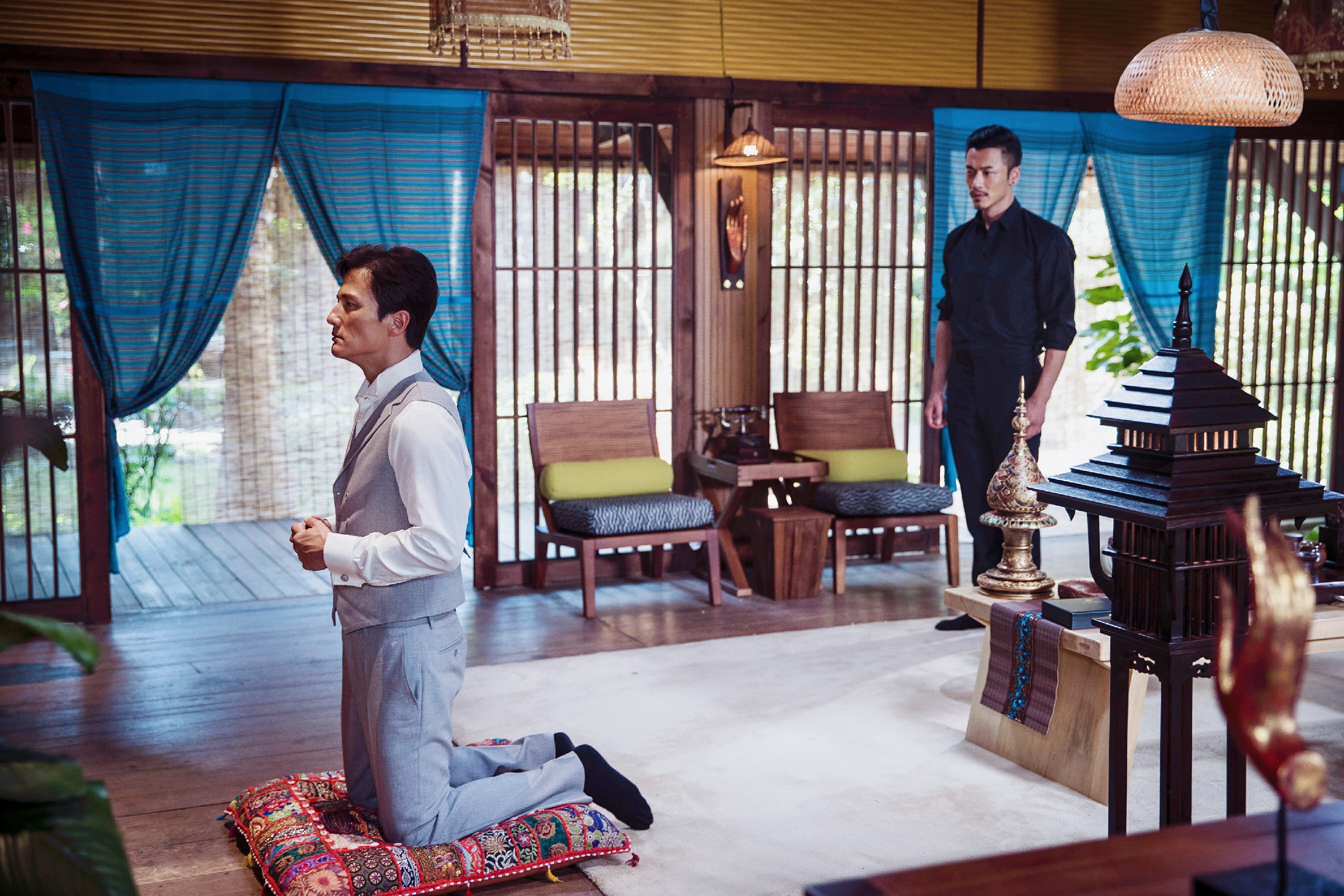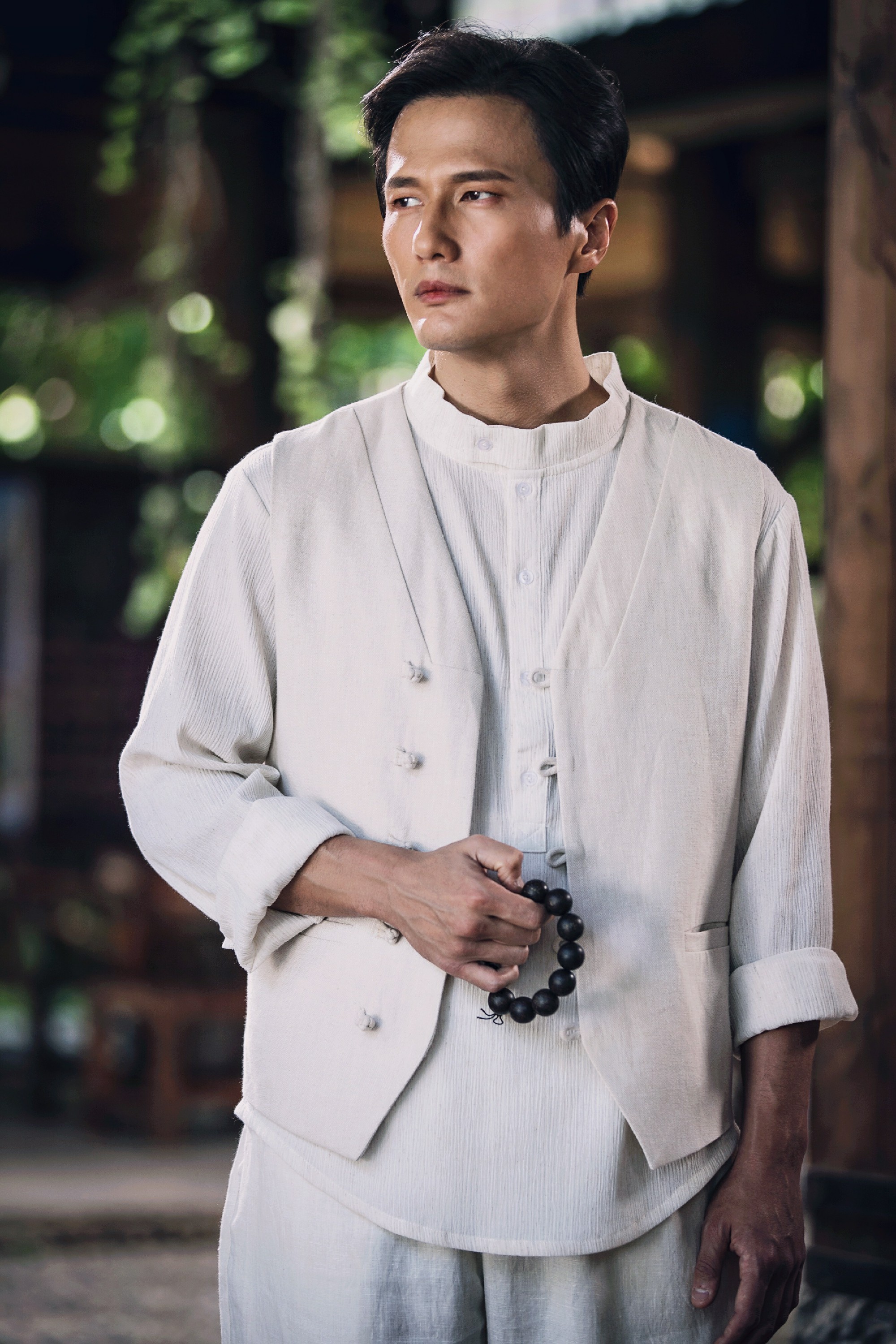 《善始善终》里面,尹子维饰演毒枭大佬马斯戒,同样是一位人不可貌相的大人物,他一身洁白西装笔挺有气质,手捻一串佛珠,永远都是一副一心向佛、心无杂念的样子,再加上蓬松大背头造型,说他是偶像剧的男主角我都信。