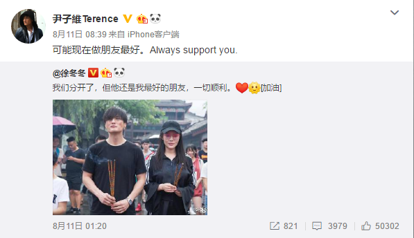 一对郎才女貌就这样分开,不少粉丝大呼可惜就在分手后不久,尹子维就扮演毒枭大佬马斯戒,还与前女友徐冬冬成名作中的“男友”角色如此相似,惹来不少网友热议,这对前男女朋友还真的是剪不断理还乱啊,但无论怎样,还是希望两人能找到下一站幸福,毕竟感情之事十分微妙,你们说呢?